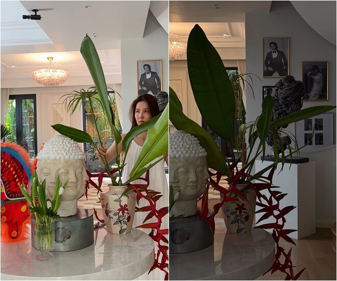 Vừa qua, Diễm My 9x chia sẻ một đoạn clip ghi lại khoảnh khắc cô cắt hoa từ vườn nhà mang vào cắm, vô tình để lộ không gian sống thanh lịch và tràn đầy sức sống. Biệt thự mà cô đang sinh sống là món quà cưới đầy ý nghĩa từ bố mẹ chồng, nơi vợ chồng cô đã dành nhiều tâm huyết để biến thành tổ ấm lý tưởng sau kết hôn.