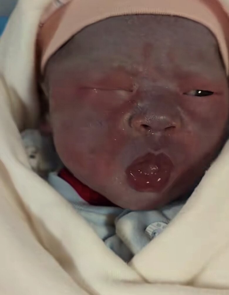 Khi em bé chào đời, vì bị mắc kẹt quá lâu trong ống sinh và thiếu oxy nghiêm trọng, cậu bé không hề khóc. Các bác sĩ và y tá gấp rút hồi sức, vỗ nhẹ vào chân và hút nước ối. Sau một hồi lâu, cuối cùng đứa bé cũng bật lên tiếng khóc yếu ớt giống như một chú mèo con.