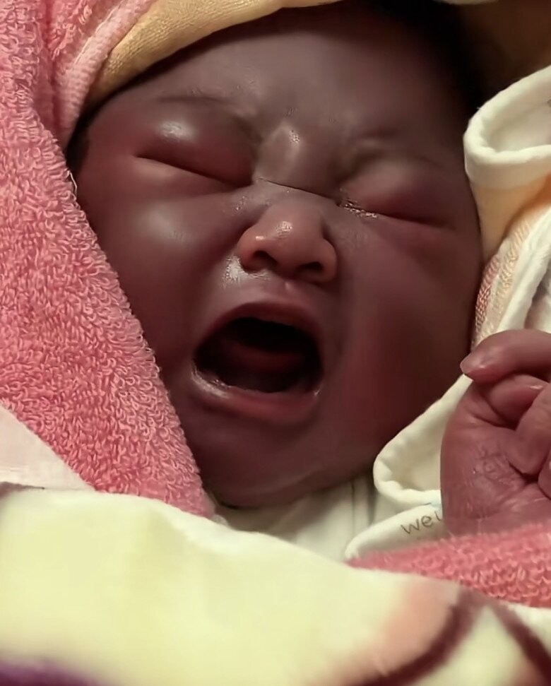 Tuy nhiên thật ra, em bé này khá may mắn, màu da tím đen trên mặt chỉ là kết quả tạm thời của tình trạng thiếu oxy và nó sẽ dần cải thiện. Trong một số trường hợp tương tự, thai nhi vì bị thiếu oxy kéo dài trong tử cung hoặc đường sinh có thể gặp phải tổn thương não, dẫn đến bại não, và nếu tình huống này xảy ra, bố mẹ sẽ là người phải hối hận cả cuộc đời.