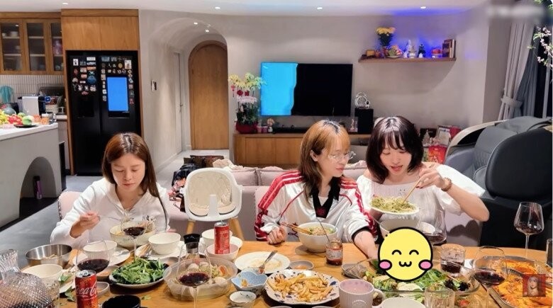 Minh Hằng trực tiếp vào bếp chuẩn bị bữa ăn đãi hội bạn thân gồm Tóc Tiên, Misthy, và Đồng Ánh Quỳnh... trong không gian bếp ấm cúng.