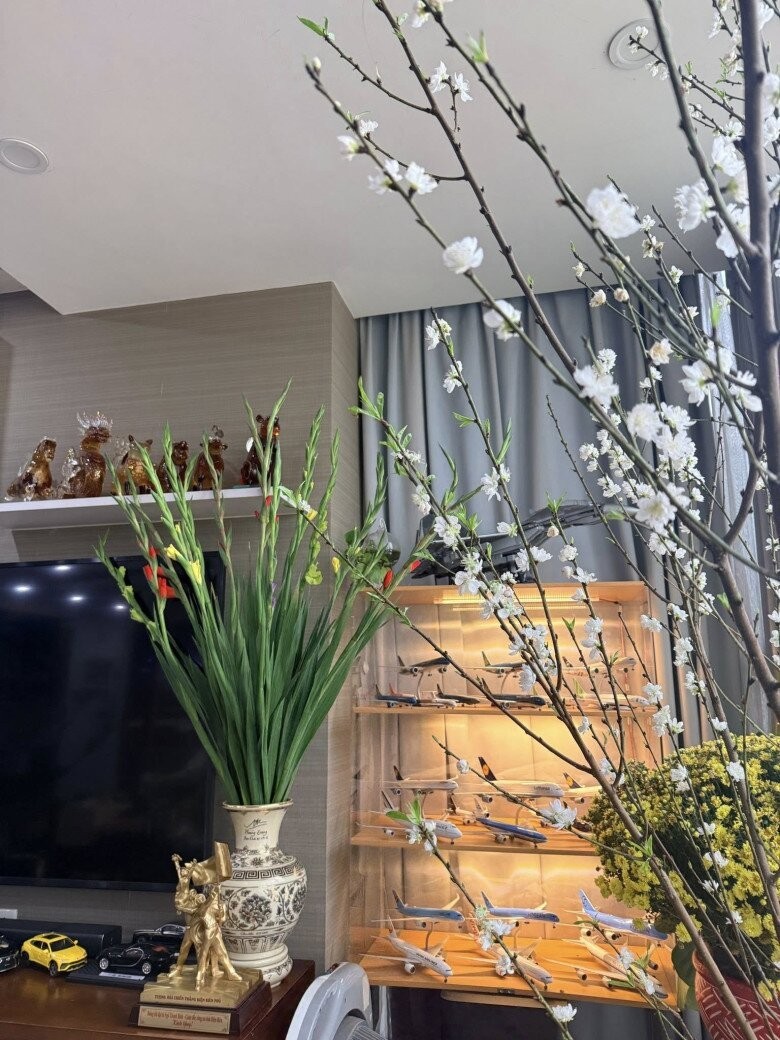 MC Hoàng Trang vốn là một người phụ nữ rất yêu việc trang trí nhà cửa và chăm lo cho tổ ấm. Không chỉ dịp Tết mà thường ngày cô vẫn hay khoe những bình hoa rực rỡ và không gian sống đầy sắc màu.