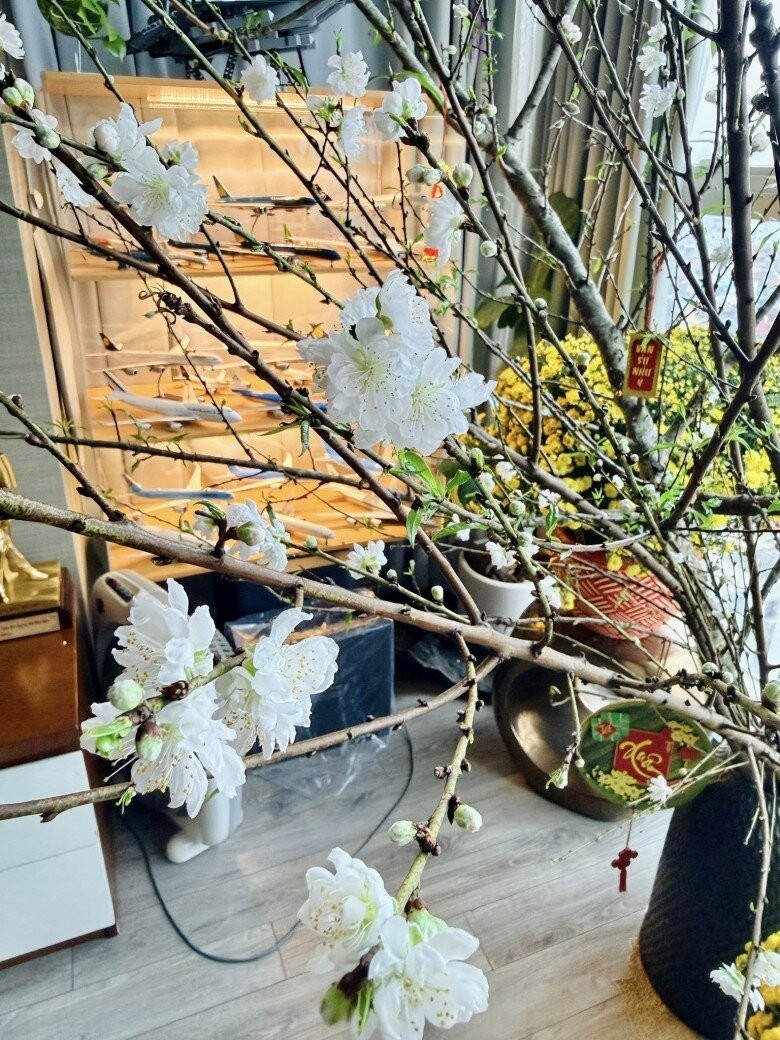 Trước Tết, Hoàng Trang đã cắm rất nhiều bình hoa. Cô bày tỏ: "Bạch đào nở. Tuyết mai nở. Hoa nở khi nào, khi ấy là Tết, sao phải đợi chờ hay thất vọng vì hoa nở sớm!?"