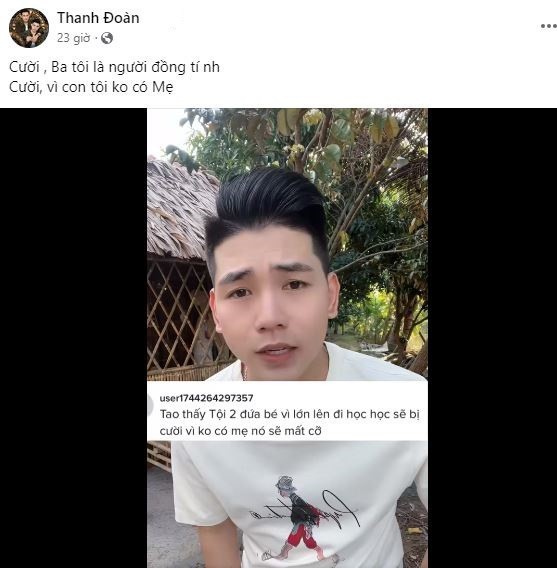 Và con bạn chọc con Đoàn là ôi mày là đồ không có mẹ và ba mày là LGBT. Vậy cho Đoàn hỏi bạn là con bạn tốt chưa. Và sự giáo dục của bạn dành cho con bạn tốt chưa.