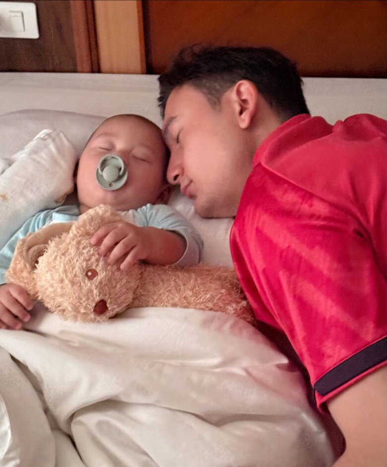 Từ khi mang thai và sau sinh, mình luôn xác định ưu tiên số 1 là công việc của anh, anh cần tập trung hoàn toàn. Nên trong kế hoạch chăm con, anh chỉ có nhiệm vụ dành thời gian chơi và gắn kết tình cảm với con là đủ".