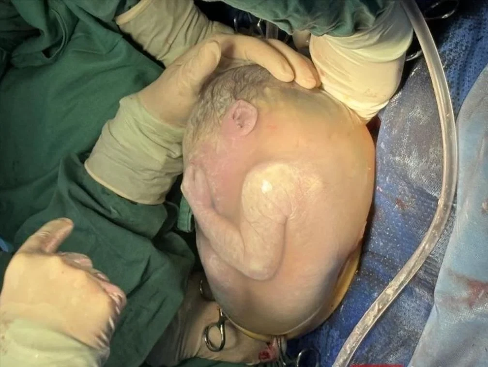 Bác sĩ giải thích, vì con của Lương Phấn sinh non và mẹ đã trải qua ba lần sinh mổ trước đó, các bác sĩ lo ngại ảnh hưởng đến sức khỏe của người mẹ nên đã quyết định để em bé chào đời với túi ối nguyên vẹn.