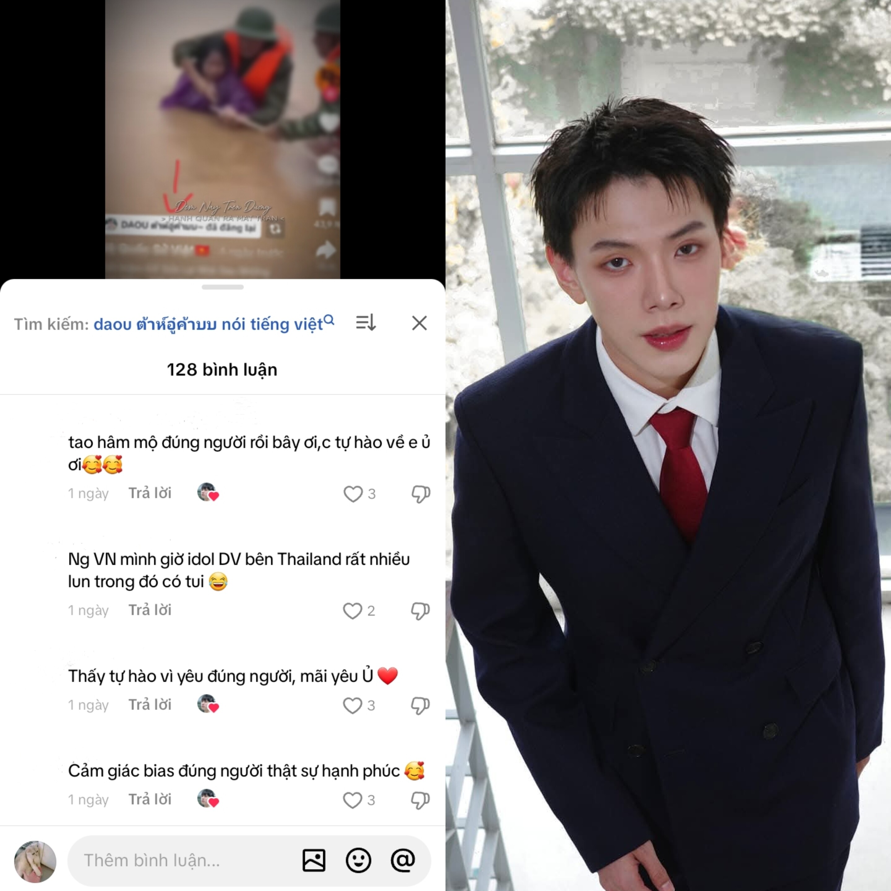 Không chỉ nghệ sĩ Việt, có 1 diễn viên Thái Lan cũng hướng về tâm lũ miền Trung của Việt Nam. Theo đó, trên TikTok cá nhân, mỹ nam Daou Pittaya Saechua đã đăng lại video nói về những mất mát, sự kiên cường của người dân miền Trung khi đối diện với thiên tai khốc liệt. Đoạn video này đạt hơn 14 triệu lượt xem, cùng hàng nghìn bình luận từ cư dân mạng Việt Nam lẫn quốc tế.
