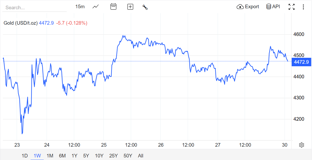 Cũng theo nguồn tin từ Dân Việt, giá vàng thế giới giao ngay trên thị trường châu Á lúc 6 giờ 30 phút sáng hôm nay ngày 30/3 (giờ Việt Nam) giao dịch ở quanh ngưỡng 4.472 USD/ounce, giảm mạnh 21 USD/ounce so với thời điểm chốt tuần qua.