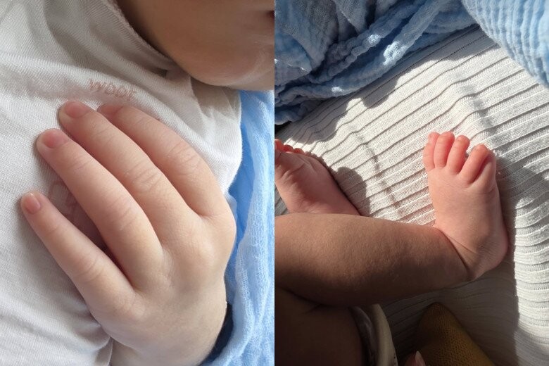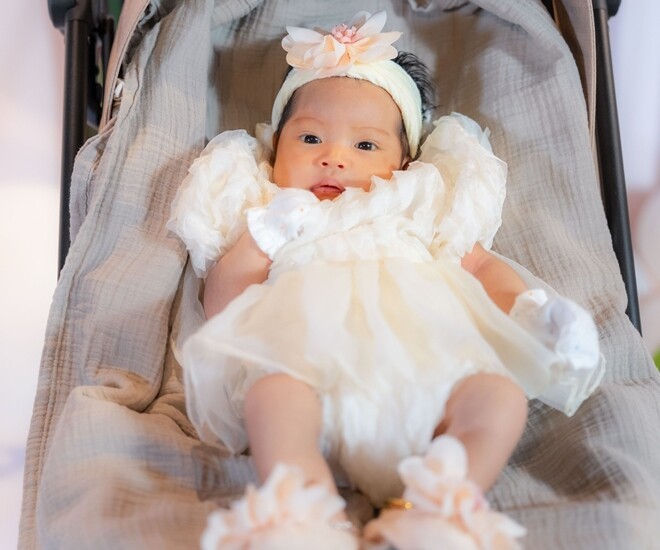 Ái nữ của nàng hậu thừa hưởng gen chiều cao của mẹ nên mới 1 tháng tuổi đã có đôi chân, ngón tay rất dài và được dự đoán sẽ có vóc dáng nổi bật trong tương lai.