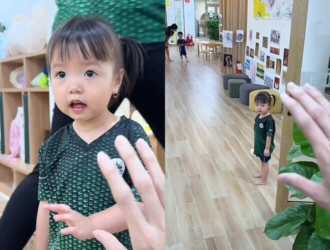 Khoảnh khắc con gái "đơ cái mặt" được bố Tuấn Dương hiểu vì bé đang chưa hiểu ngôn ngữ của cô giáo và các bạn.