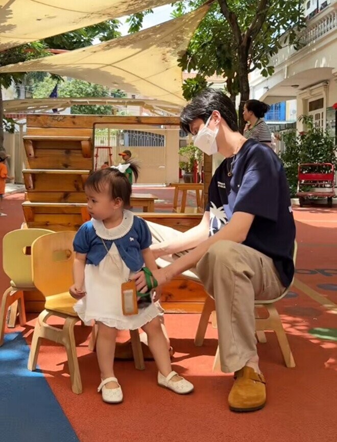 "Cô giáo Nami nói tiếng Anh, Nami nói tiếng Việt, nhưng em nghĩ sau một khoảng thời gian học, thì cô giáo mới là người biết tiếng Việt, chứ không phải con gái em biết tiếng Anh" - ông bố bỉm sữa hài hước chia sẻ.