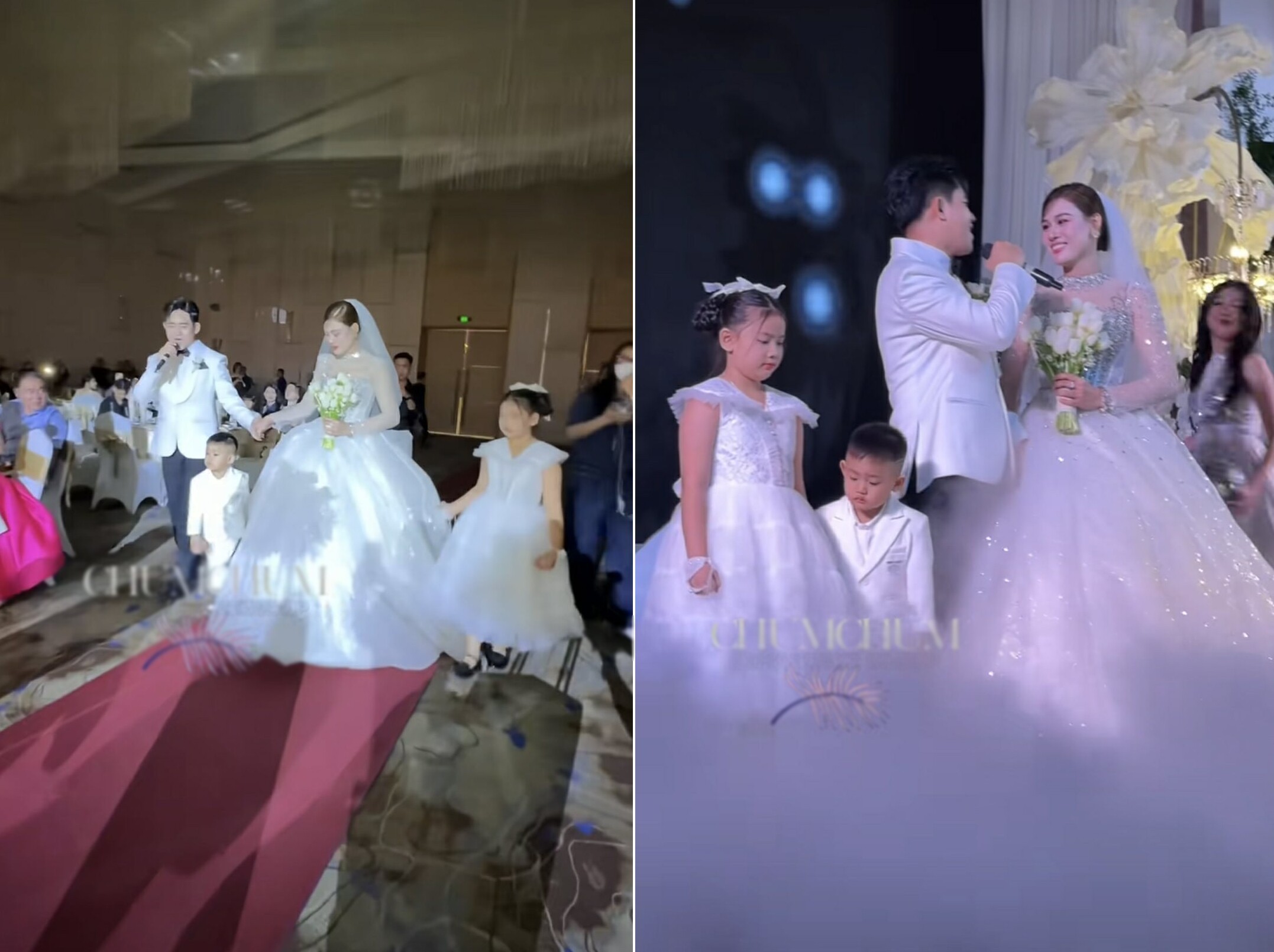 2 con của Linh Lan xuất hiện trong đám cưới của bố mẹ.