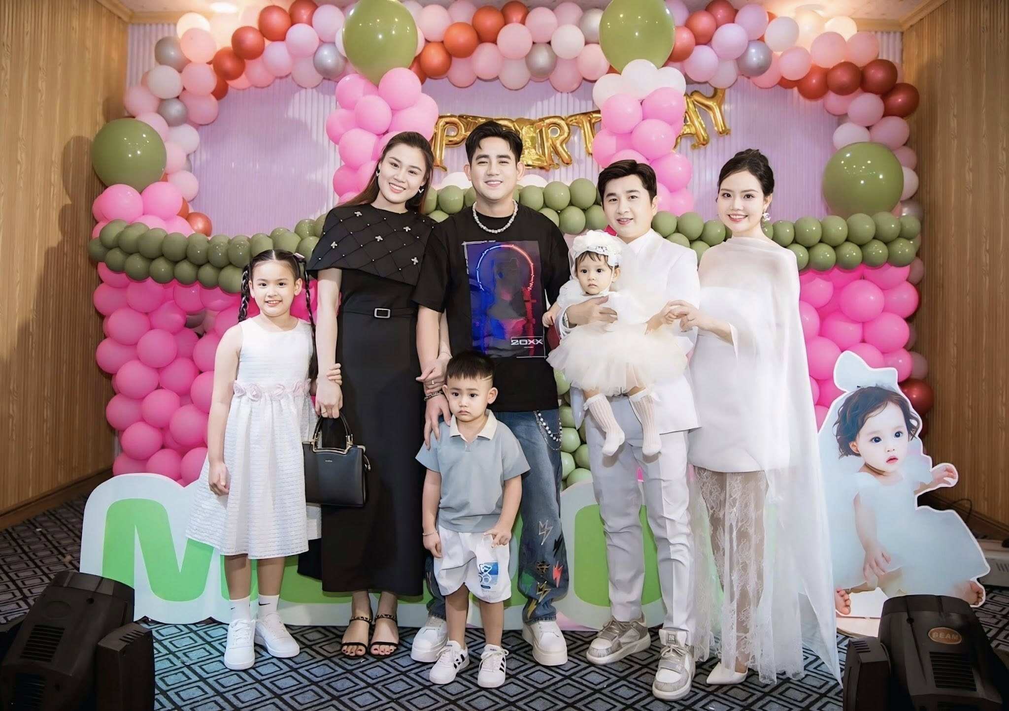 Vợ chồng Linh Lan cùng 2 con đến dự tiệc thôi nôi của con gái ca sĩ Bằng Cường.