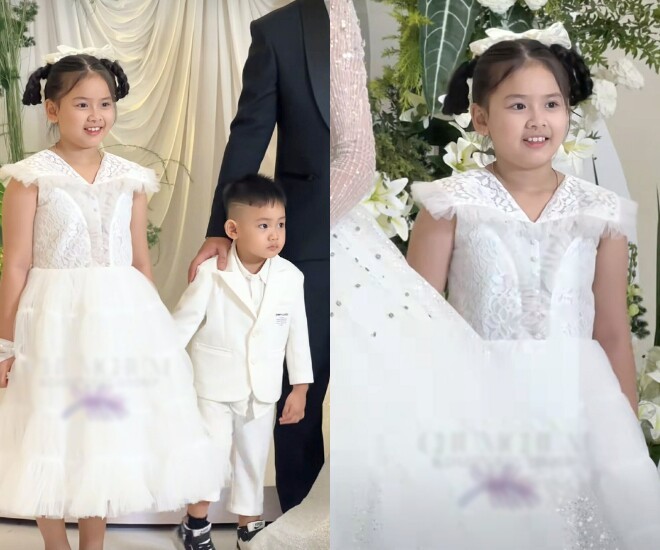 Đặc biệt, bé Helen (con chung của Linh Lan với cố nghệ sĩ Vân Quang Long) và bé Tiger (con chung của Linh Lan với Đinh Kiến Phong) có mặt trong ngày vui của bố mẹ. 2 "thiên thần nhỏ" được chuẩn bị trang phục màu trắng đồng điệu.