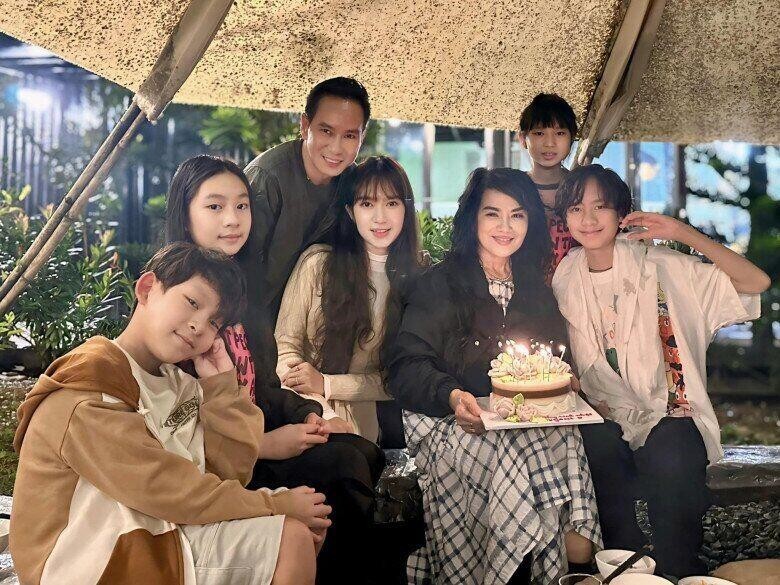 Hiện mẹ ruột của Lý Hải có mái tóc bạc trắng, nở nụ cười hạnh phúc khi quây quần bên các con cái. Nam đạo diễn cũng chia sẻ bức ảnh chụp riêng với bà kèm dòng trạng thái ngắn gọn mà tình cảm: “Má và con trai út”.