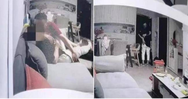 Những hình ảnh ngoại tình của vợ ông Peng được camera giám sát ghi lại.
