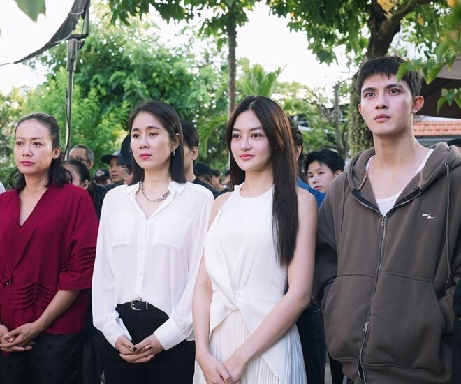Không chỉ gây ấn tượng với tạo hình hiện đại trên poster, Lê Phương còn là tâm điểm của những câu chuyện hậu trường ấm áp. Trở lại màn ảnh sau vai diễn ấn tượng trong Cuộc Chiến Hạ Lưu, nữ diễn viên không giấu được sự phấn khích khi lần đầu được chung mâm với 3 "chị đại" của làng phim Việt: NSND Lan Hương, NSƯT Mỹ Duyên và Hồng Ánh.
