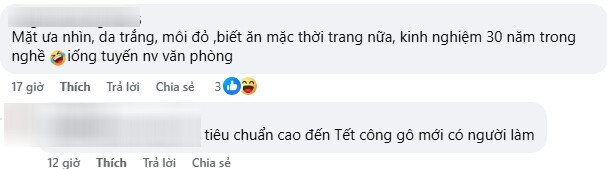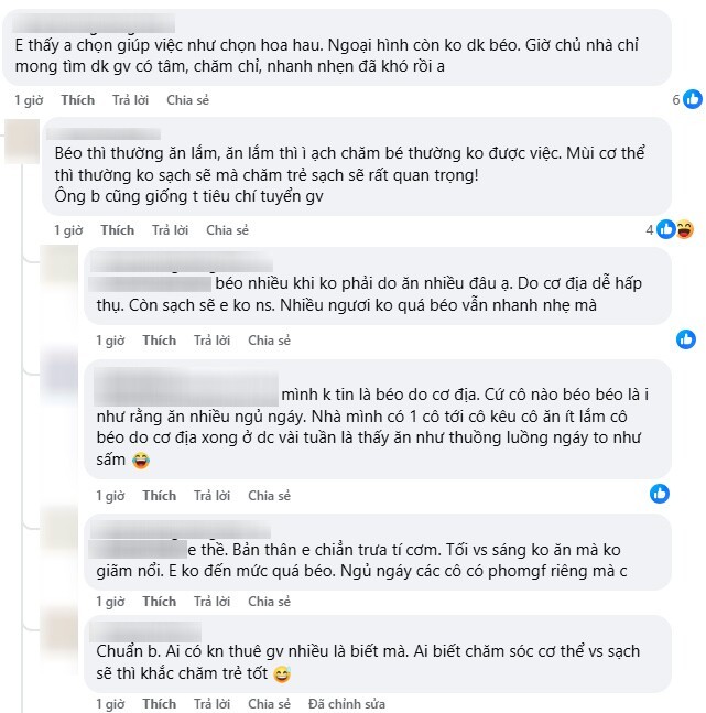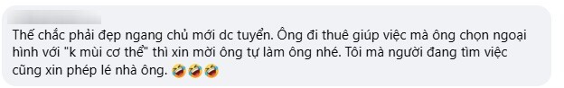 Song phần những tiêu chí yêu cầu mà ông bố trẻ đưa ra lại gây tranh cãi. Ngoài yêu cầu về độ tuổi, người đàn ông này còn yêu cầu giúp việc không được nói ngọng "n, l", yêu trẻ, biết chăm trẻ sơ sinh nhanh nhẹn, nấu ăn ngon, sạch sẽ và đặc biệt là người vừa không được béo và không có mùi cơ thể.