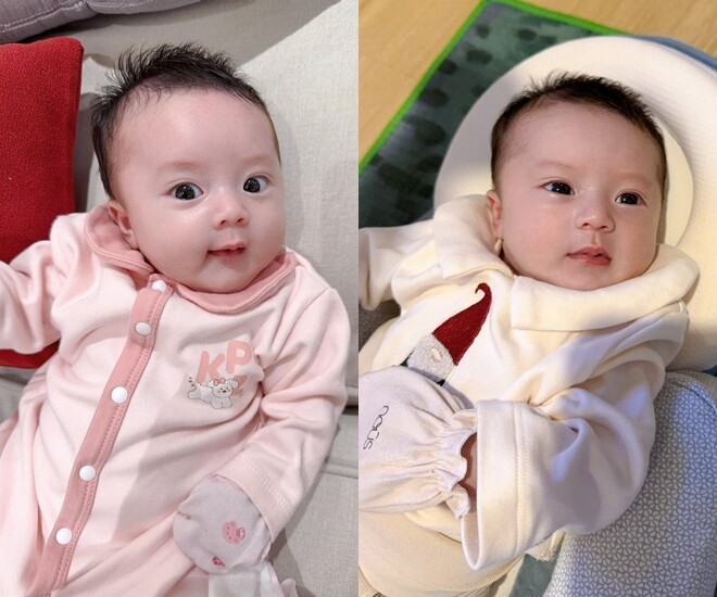 Con gái của NSƯT Vũ Luân và Hoa hậu Phương Lê mới 1 tháng tuổi đã cứng cáp, biểu cảm đáng yêu