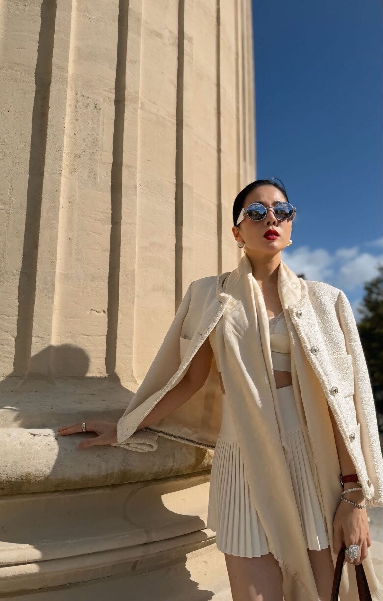 Trên trang cá nhân, Lệ Quyên khoe loạt ảnh trong chuyến đi lưu diễn ở nước ngoài. Cô tiết lộ: "Tranh thủ làm mấy kiểu ảnh cho ngày nắng đẹp. Nhìn thư thả thế thôi chứ đang đi làm vất vả lắm đấy".