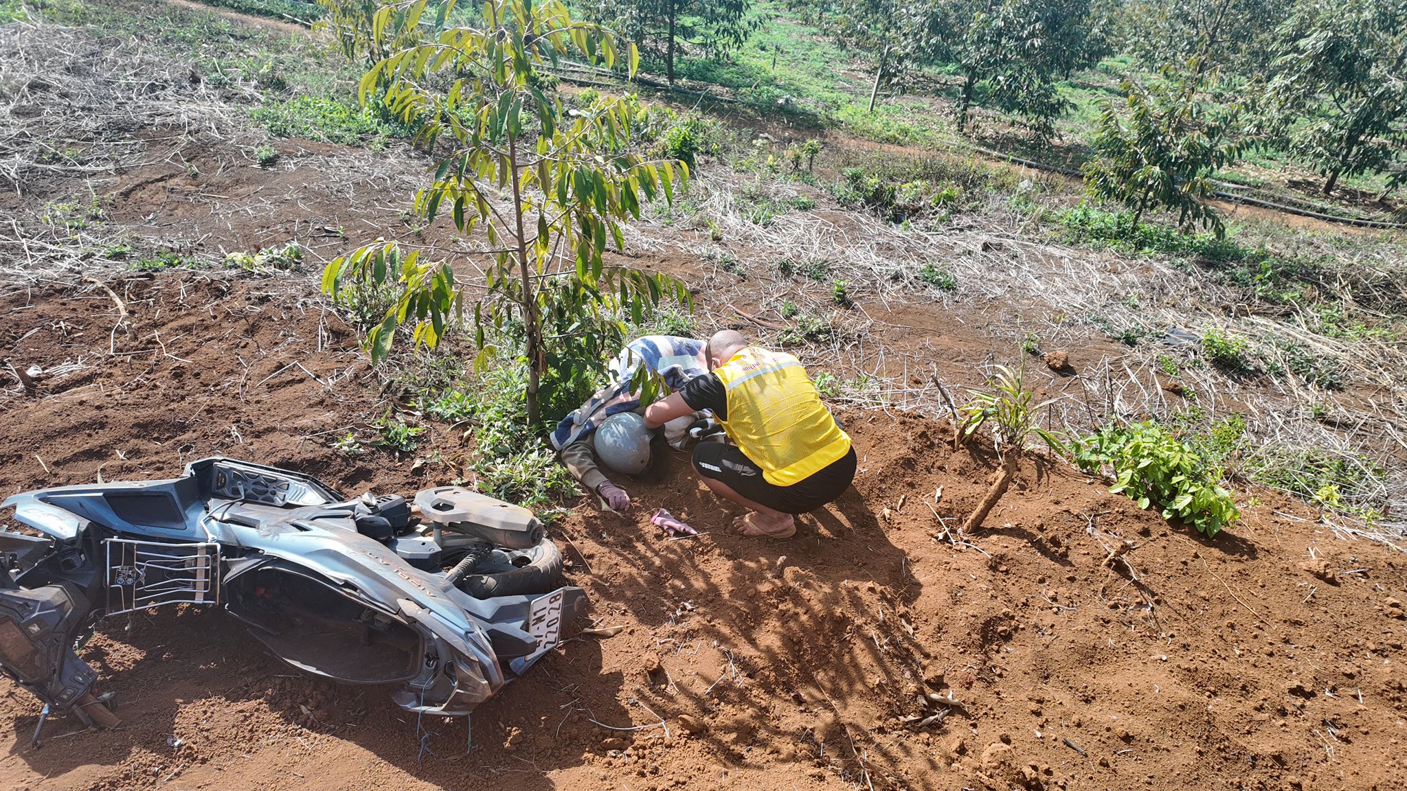 Vụ tai nạn khiến 2 phương tiện lao xuống dốc ven đường.