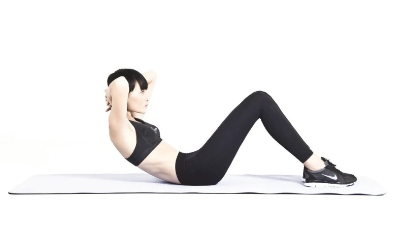 Cách thực hiện: Nằm ngửa, hai gối gập, hai bàn chân đặt song song trên mặt sàn. Hai bàn tay đan chéo vào nhau đặt sau đầu. Hít vào, cúi cổ và nâng thân mình khỏi mặt sàn, giữ vài giây sau đó từ từ hạ thân mình xuống trở về tư thế ban đầu và thở ra. Thực hiện khoảng 2-4 hiệp, mỗi hiệp khoảng 10-15 lần hoặc cho đến khi mỏi tối đa. Nghỉ 1-2 phút giữa các hiệp.