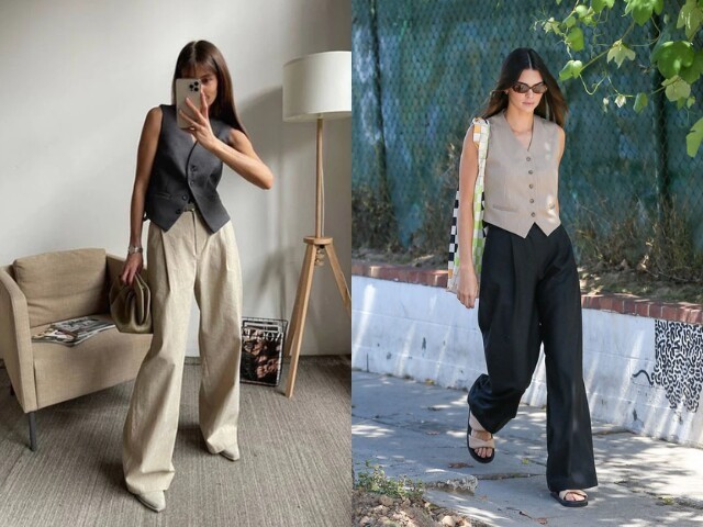 Khi phối cùng quần ống suông, gile vest mang lại vẻ ngoài thanh lịch pha chút cổ điển. Bạn có thể mặc riêng hoặc layer cùng áo sơ mi bên trong để tạo điểm nhấn. Điểm cộng lớn của item này là vừa phù hợp đi làm, vừa có thể diện đi chơi mà vẫn giữ được nét sang trọng, tinh tế.