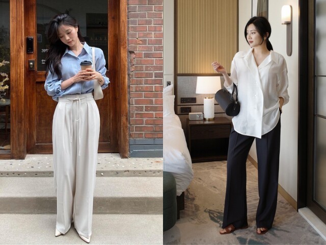 Khi kết hợp với quần ống suông, áo sơ mi giúp tổng thể trở nên cân đối và tinh tế hơn. Một chút sơ vin lệch hoặc xắn tay nhẹ cũng đủ tạo điểm nhấn mà không cần thêm phụ kiện. Đây là cách phối đồ đơn giản nhưng luôn hiệu quả, phù hợp với nhiều hoàn cảnh khác nhau.