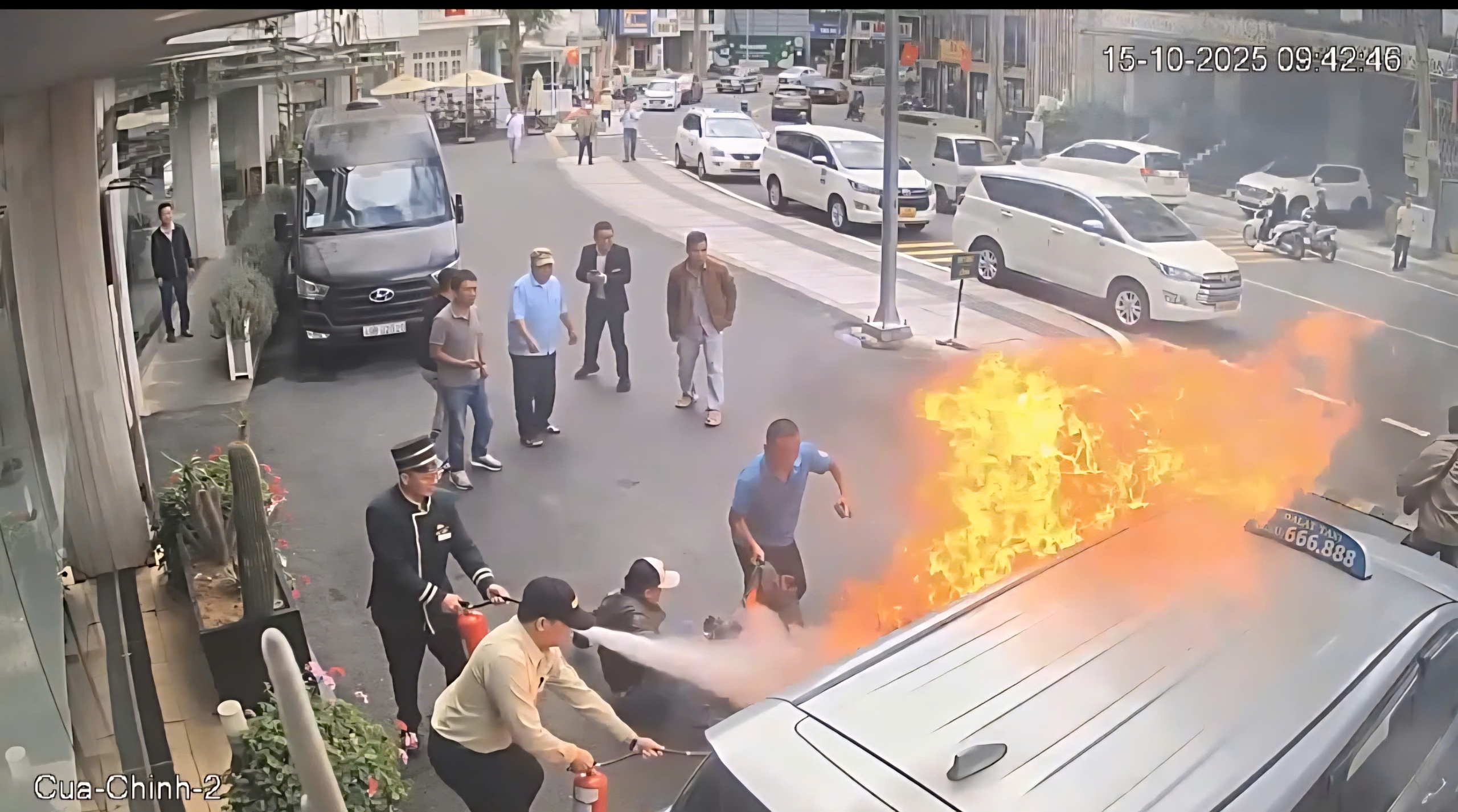 Theo báo Lao Động, một đoạn clip dài hơn 5 phút lan truyền trên mạng xã hội ghi lại cảnh một chiếc xe taxi đang đậu trước khách sạn Golf Valley (phường Xuân Hương - Đà Lạt, Lâm Đồng) thì bất ngờ bốc khói.