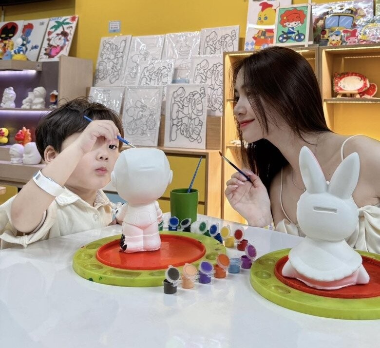 Hoà Minzy dù bận rộn vẫn dành thời gian bên cạnh con trai.
