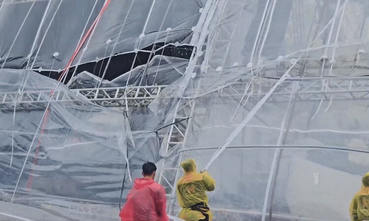 Cận cảnh rạp cưới bị rách bung vì mưa bão.