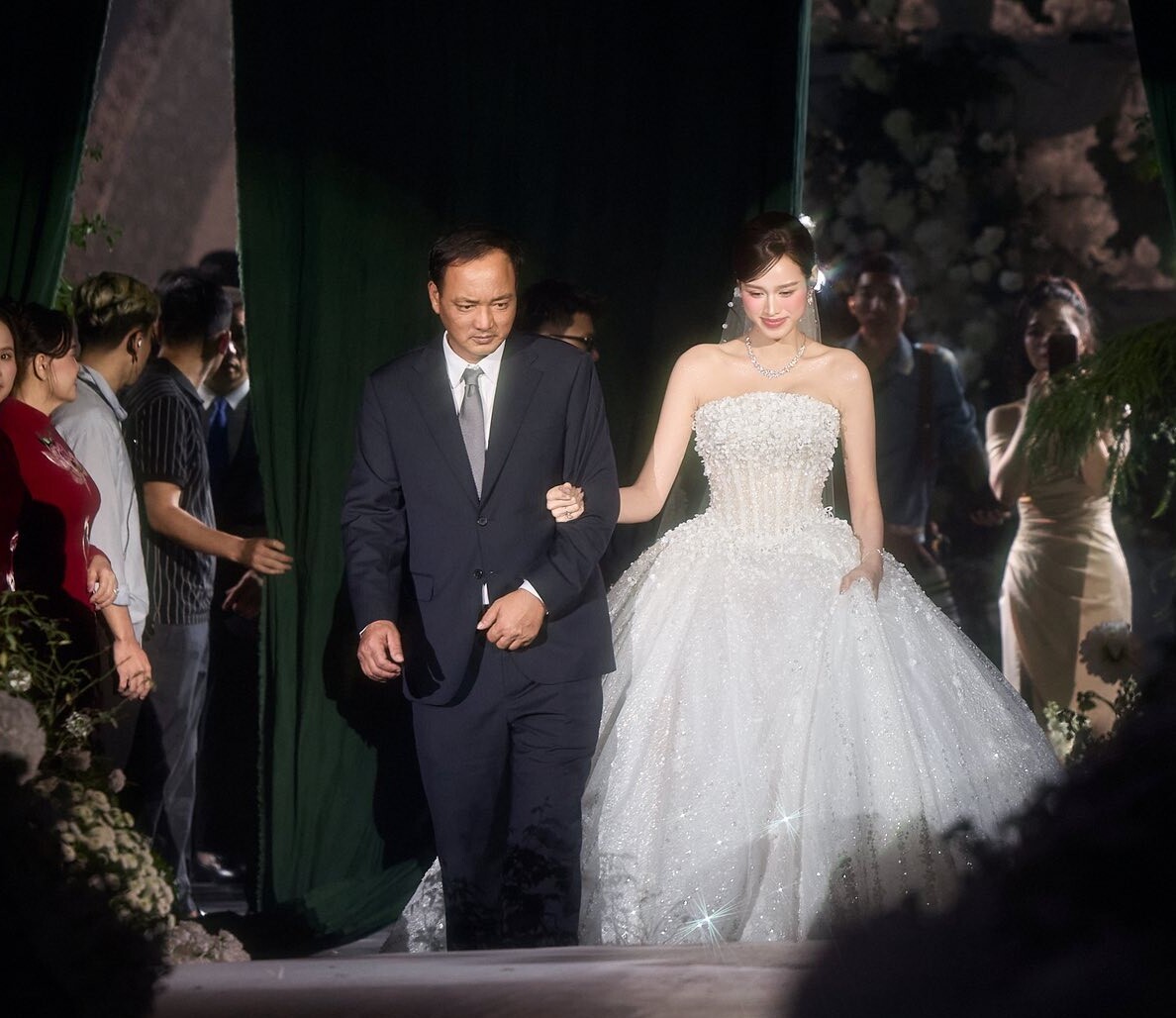 Bố ruột Đỗ Thị Hà dắt tay ái nữ lên lễ đường, trao cho con rể.